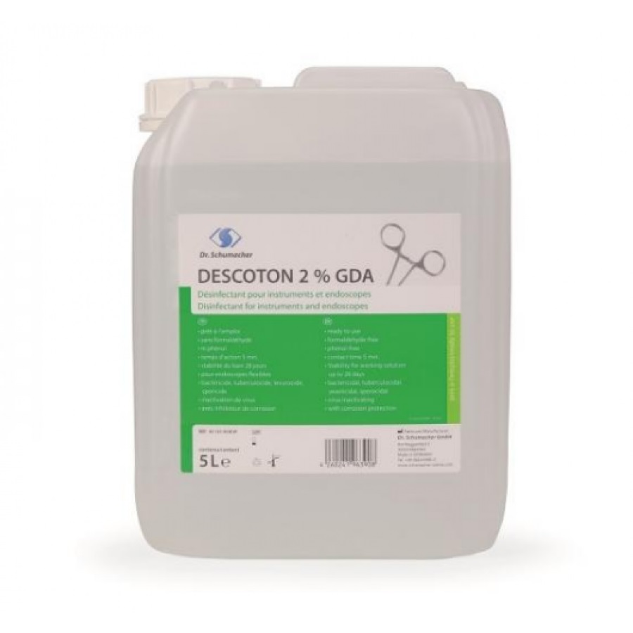 Το Descoton 2% GDA είναι ένα έτοιμο προς χρήση διάλυμα, ελεύθερο φορμαλδεΰδης και φαινολών, για την απολύμανση ιατρικών εργαλείων και ενδοσκοπίων.