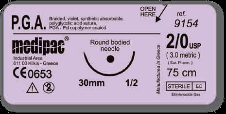 ΡΑΜΜΑ MEDIPAC ΑΠΟΡΡΟΦΗΣΙΜΟ PGA 3/0 (Ο&1/2&26mm) No9143